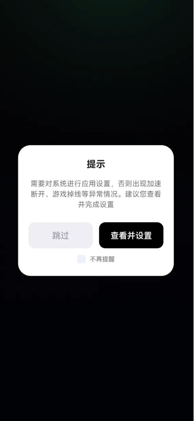 4. 安卓手机如果游戏加速如果出现高延迟,有可能是本地安卓系统自带加速器进行了干扰,请根据点击弹窗中「查看并设置」查看相应教程进行设置